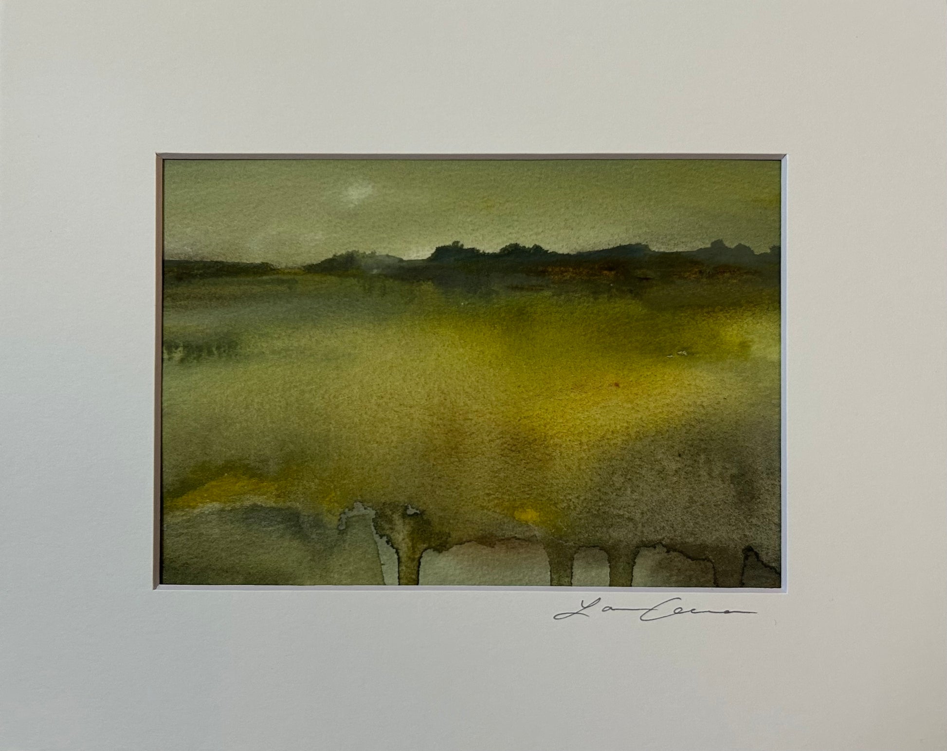 This piece comes signed on the back of the artwork as well as signed on front of the mat. This piece is UNFRAMED.